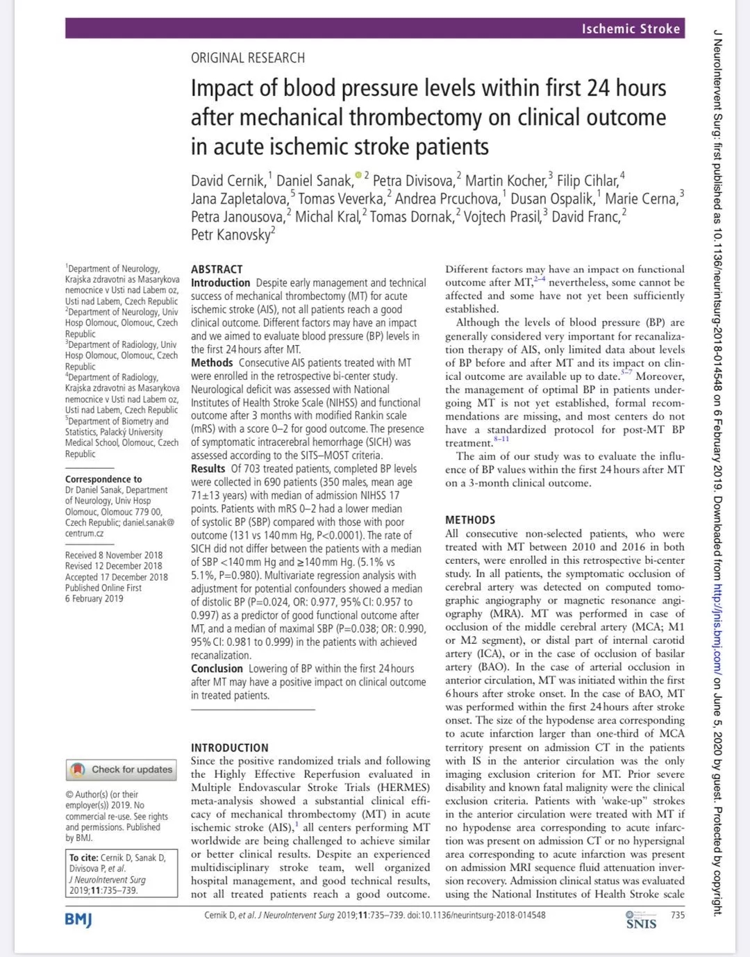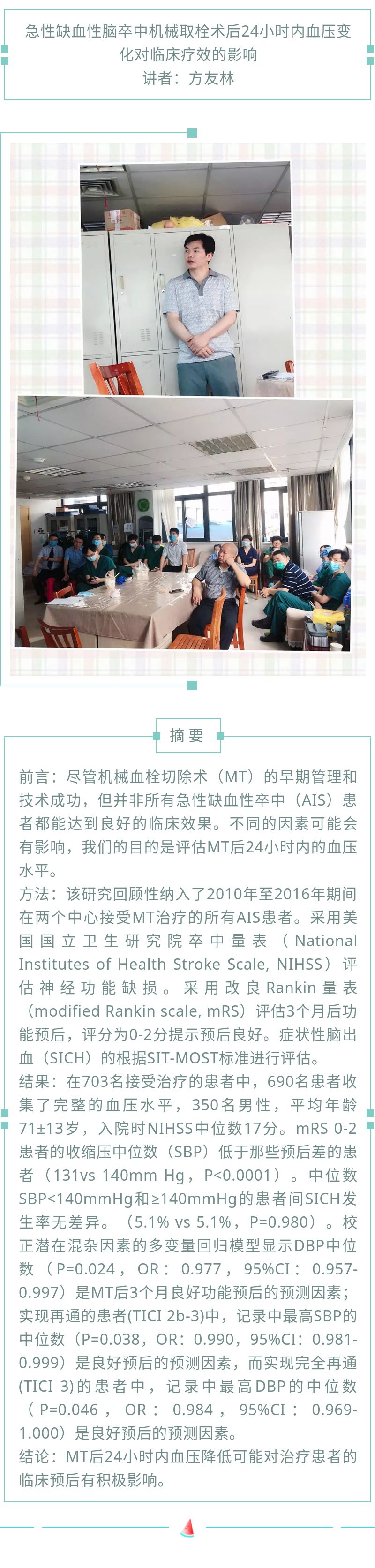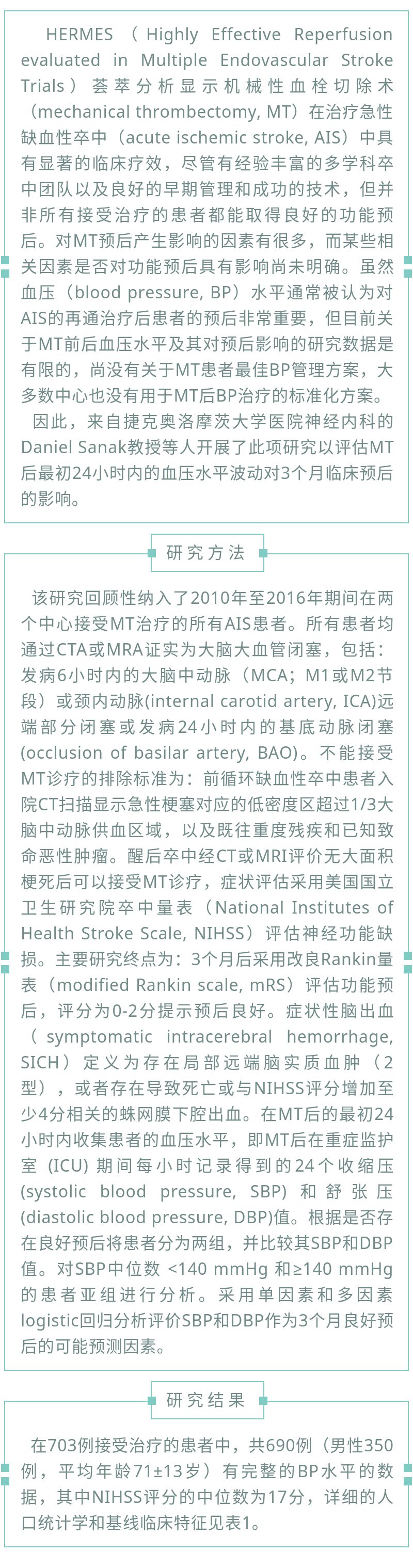 【脑卒中沙龙】急性缺血性脑卒中机械取栓术后24小时内血压变化对临床疗效的影响(2020年第10期) 发布时间:2020-06-17 来源:神经内科二病区 上一篇:没有了 下一篇: 2021年湖北省脑卒中防治工作研讨及培训会在汉召开