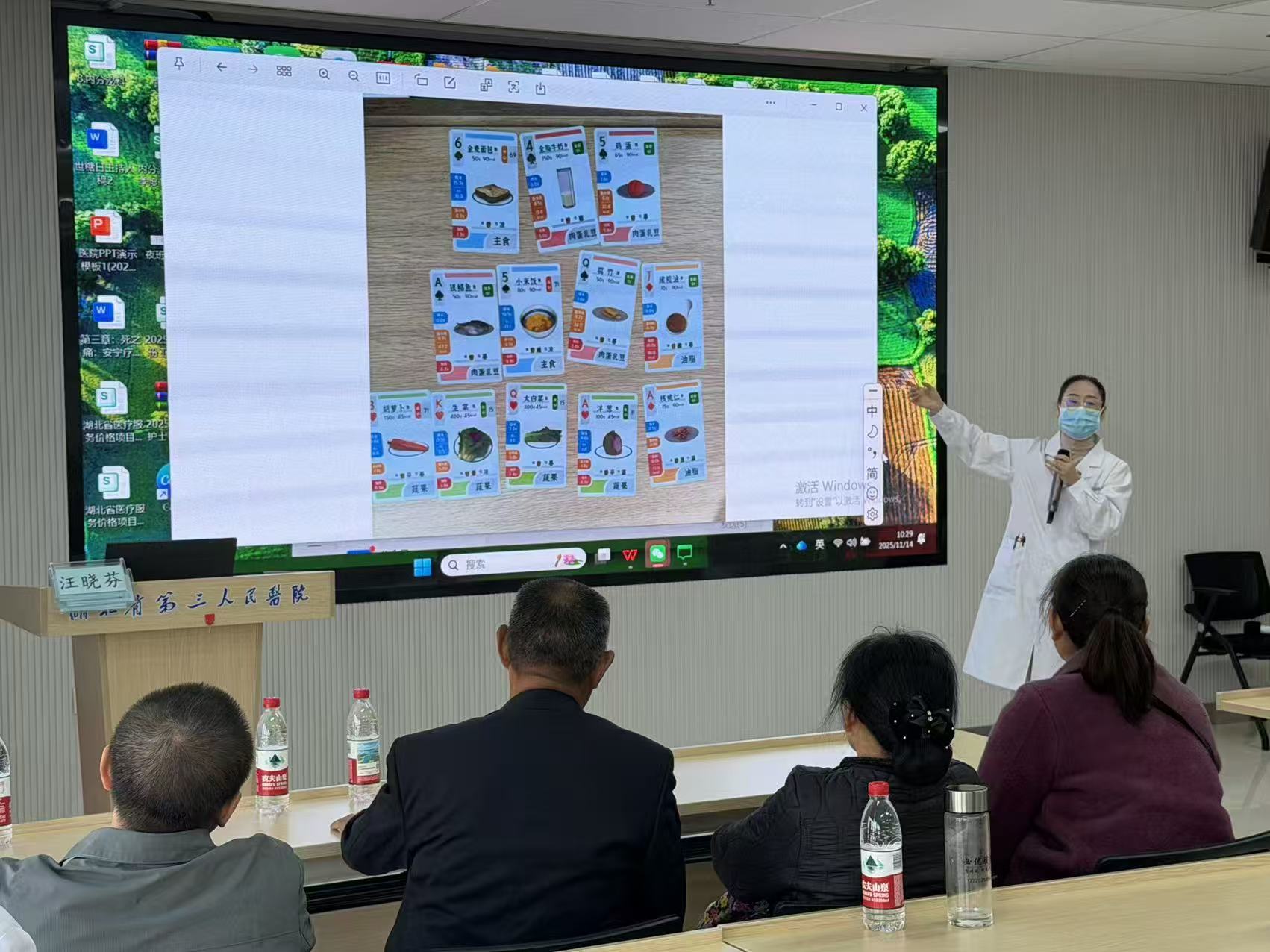 要说活动现场最热闹的环节,当属“营养拼盘竞赛”。糖友们手持特制的食物扑克牌,精心挑选搭配,你选“杂粮饭”,我配“清蒸鱼”,努力凑出自己心中的“健康餐”。内分泌科主任汪晓芬主任和医生蔡莉在一旁担任裁判,一边认真点评,一边悉心支招:“这个搭配GI值低,适合日常吃”,“三餐要注意GL值平衡,别只看单一食物。”在快乐得游戏中,实用的饮食技巧不知不觉就印在了糖友们的脑海里。
