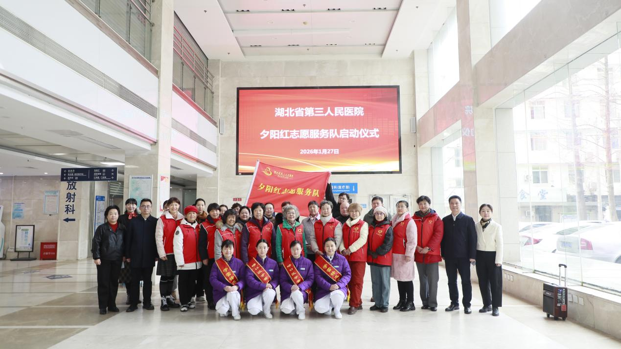 为充分发挥离退休干部的政治优势和经验优势,引导老同志为党和人民的事业增添正能量,2026年1月27日,湖北省第三人民医院“夕阳红志愿服务队”启动仪式在诚信楼一楼大厅举行。这标志着湖北省第三人民医院离退休同志志愿服务工作迈入了组织化、规范化、常态化的新阶段,为老同志搭建了“老有所为、发光发热”的实践平台。