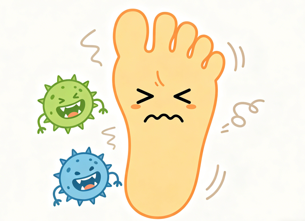 足部瘙痒糜烂,散发异味,